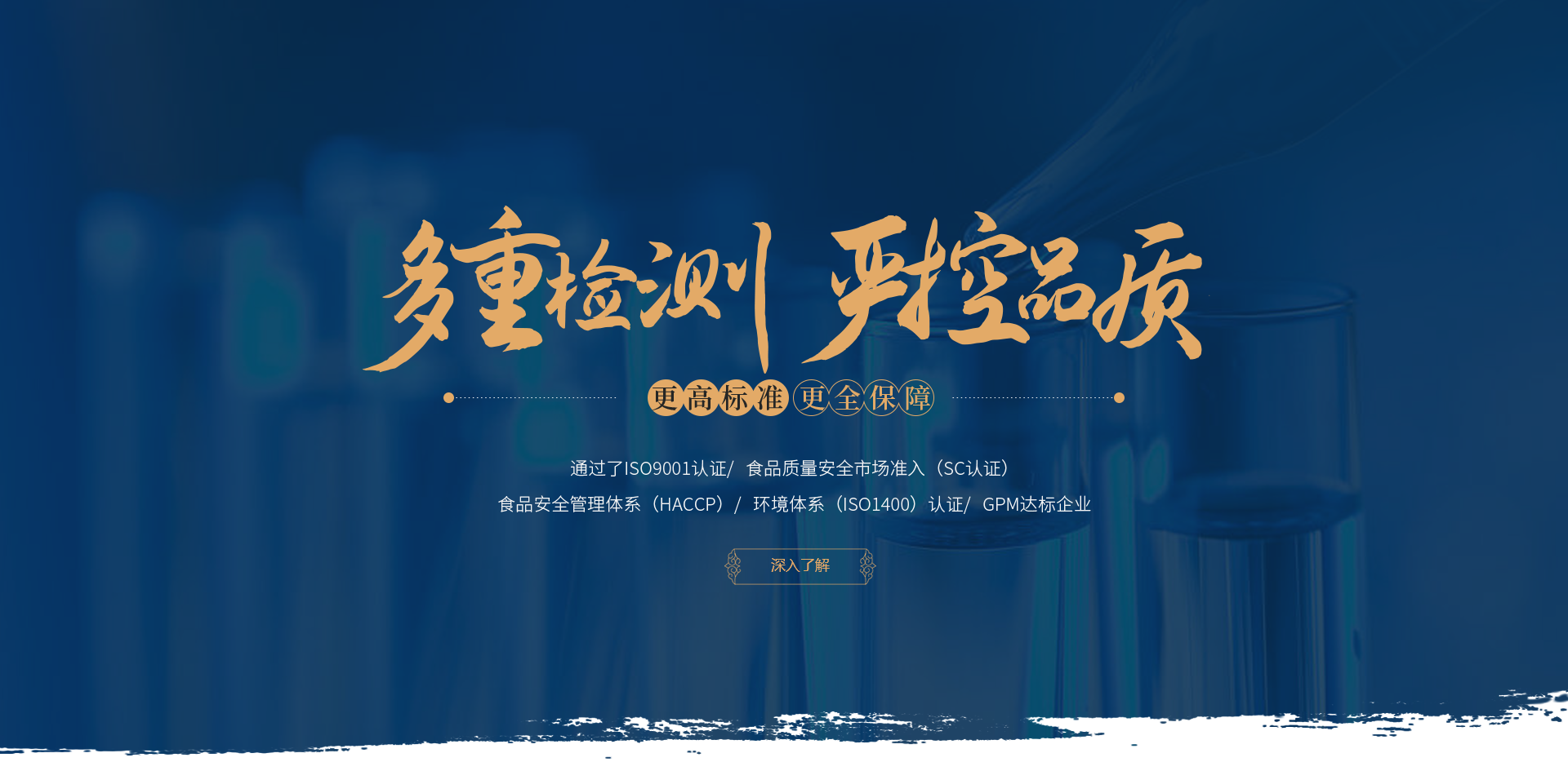 拥有现代化的生产厂房和生产设备,整体生产线严格遵守国家食品行业生产标准建立健全了产品质量保障体系,对生产、检验、储运、销售等实行全程监控